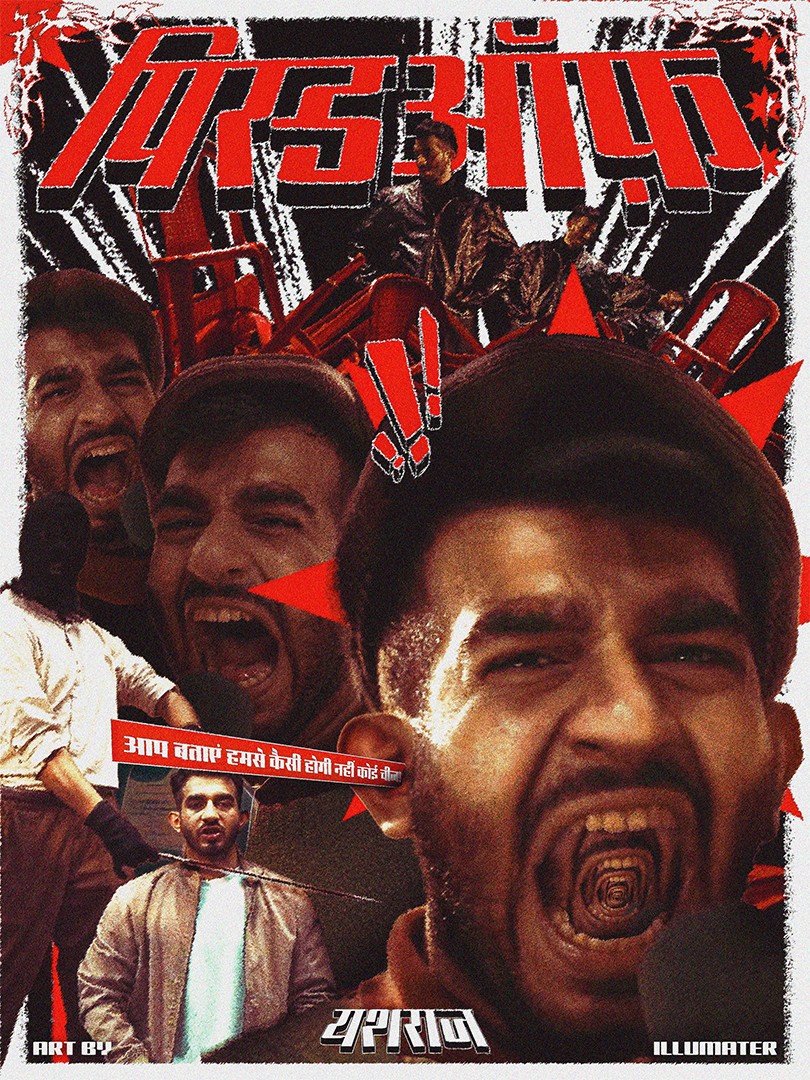 This poster artwork was created as a tribute to KR$NA’s track “Knock Knock,” with creative direction by Illumater. Designed in the style of a retro-Bollywood gangster poster, the piece captures multiple personas of KR$NA in one frame from sharp suits to street visuals, holding cards, megaphones, and even rolling with a bike and horse. The heavy red backdrop and grainy textures amplify the raw, cinematic energy, while the bold 3D Hindi typography for “Knock Knock” anchors the composition at the center. The overall theme reflects confidence, versatility, and a larger-than-life presence, echoing KR$NA’s lyrical dominance through striking visual storytelling.